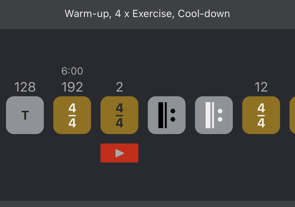 Then you can program repeats. A single bar will be played several times if you increase the play count by pressing the button for the bar several times.