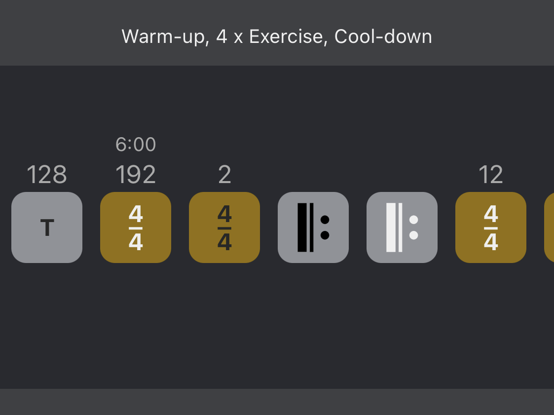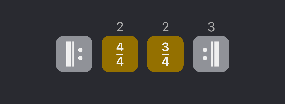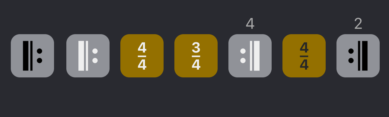 The play count of a bar can be set by tapping the button for the bar as many times as it needs to be played. Alternatively, it is possible to set the play count by doing a long press on the bar button.