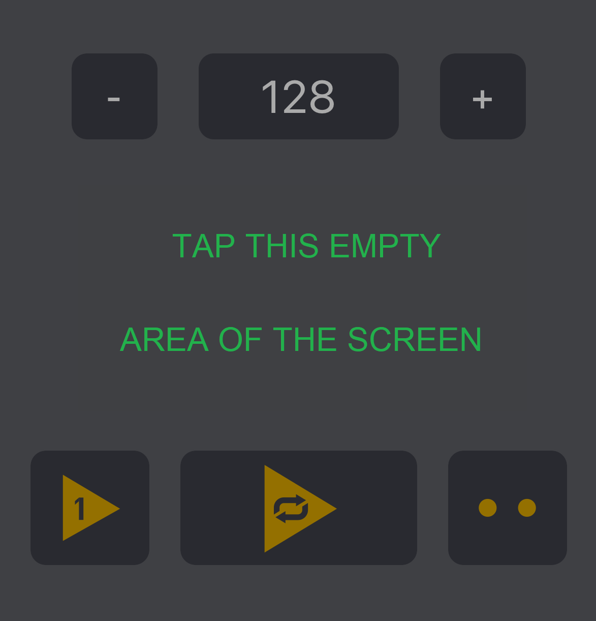 Tempo Tool is actually a quite simple tool: all you can do is just to tap the screen. Tempo Tool records your tappings and displays the tempo and changes in tempo.