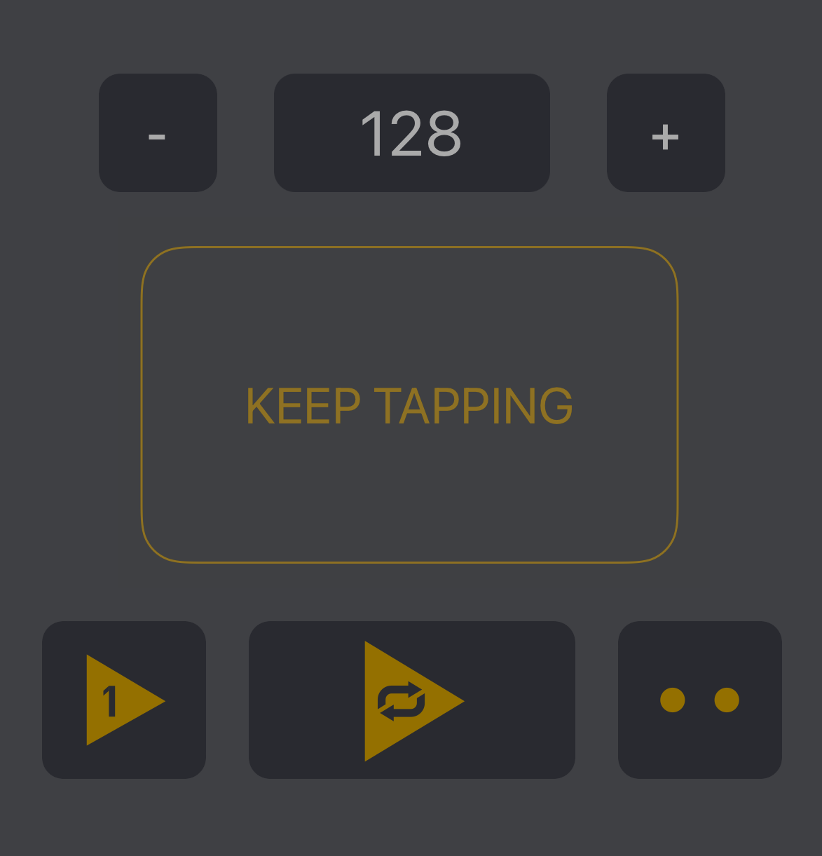 After the first tapping the text KEEP TAPPING emerges, and after the fourth tapping the metronome starts looping using the tapped tempo.