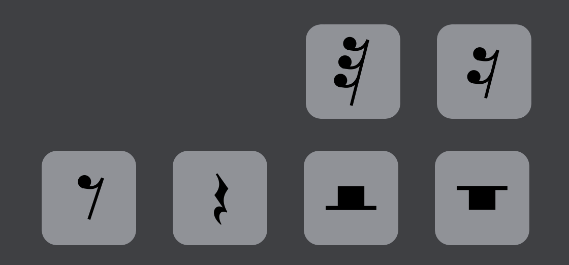 BARBARA has buttons with which to create silent bars or notes. The rest buttons are marked with traditional musical symbols: