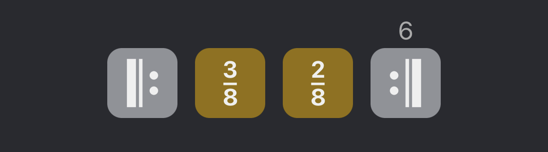 BARBARA has bar buttons for many time signatures, but those buttons do not cover all possible time signatures. To solve this problem, there exist the buttons in which the upper numeral is 1, and the other button is grey in color.