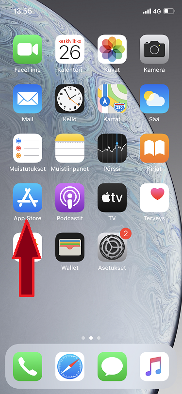Tuo ikoni saattaa näyttää erilaiselta, jos olet jo kirjautunut App Storeen. Jos et ole kirjautunut, tässä vaiheessa sinua pyydetään kirjautumaan Apple ID:lläsi. On mahdollista että App Store käyttää ns. kaksivaiheista todennusta, jolloin sinun täytyy syöttää vielä koodi, jonka Apple lähettää sen jälkeen kun olet antanut salasanasi.